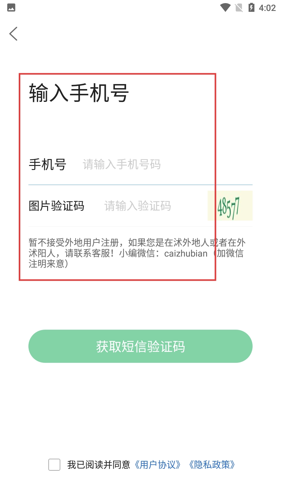 在注册页面填写手机号与图片验证码,接着完成剩下的注册步骤。