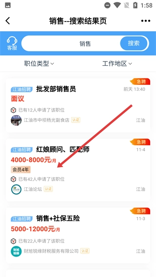 在搜索结果页面,浏览岗位列表,挑选自己感兴趣的职位,像【红娘顾问、匹配师】这类就可以。