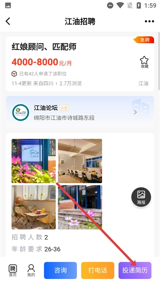 进入职位详情页面后,你可以点击【投递简历】按钮,来申请这个招聘岗位。