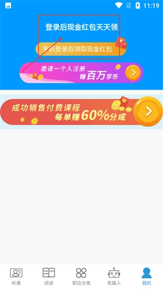 在教育类的听课页面,点击右下角的“我的”按钮,即可进入个人中心页面。