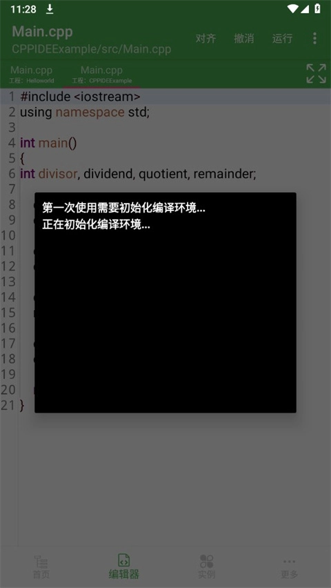 打开C++编译器IDE手机版,在编辑器页面写完代码后,点击右上角的运行按钮就能执行代码。