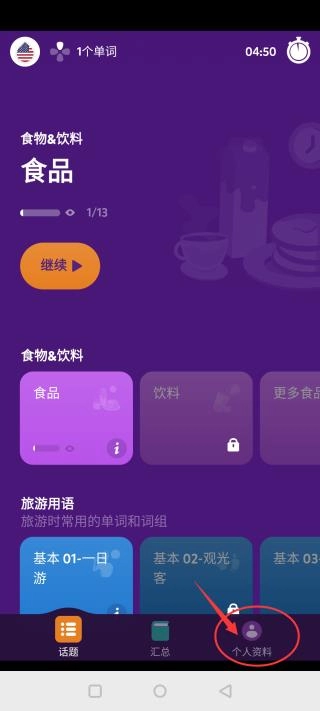 在个人资料界面点击“语言”。