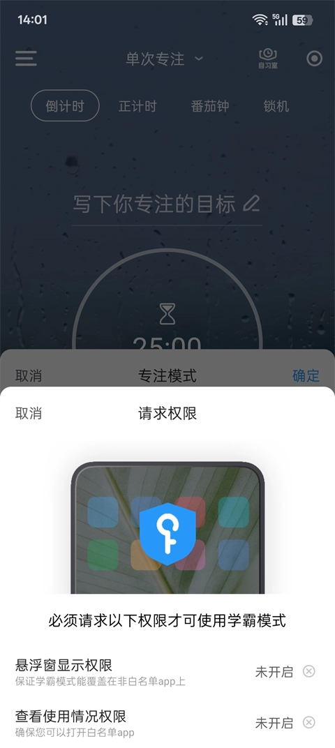 ●学霸模式:开启该模式后,你打开其他任何应用都会被强制跳转回时光序的专注页面,只有「白名单」内的应用除外。