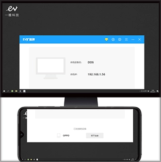 在本站完成安装后点击打开进入,手机和电脑分别启动EV扩展屏应用,且两者需处于同一网络环境下。