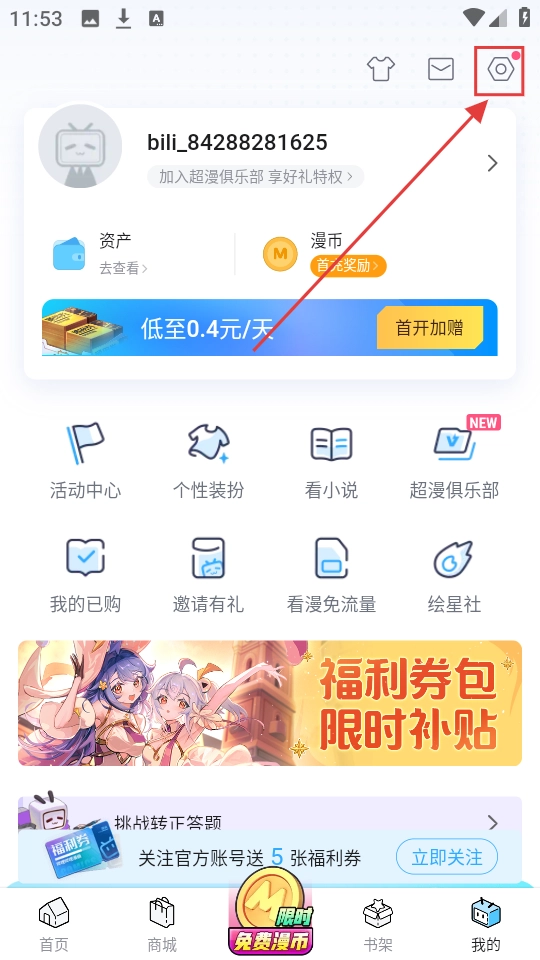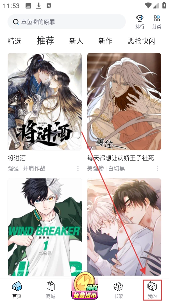 在首页浏览完漫画后,点击右下角的【我的】按钮就能进入个人页面啦,这里可是设置功能的入口哦。