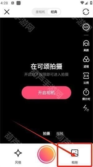 可以选择直接拍摄照片,也可以点击界面右下角的相册图标来选取图片。