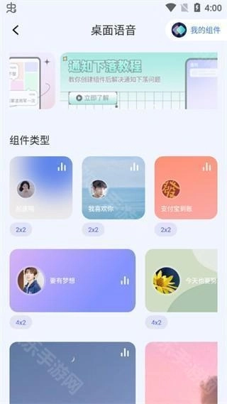 4、桌面语音功能新增桌面语音小部件,可快速将该小部件添加至桌面,让你随时能与喜爱的男神女神语音互动,触手可及。