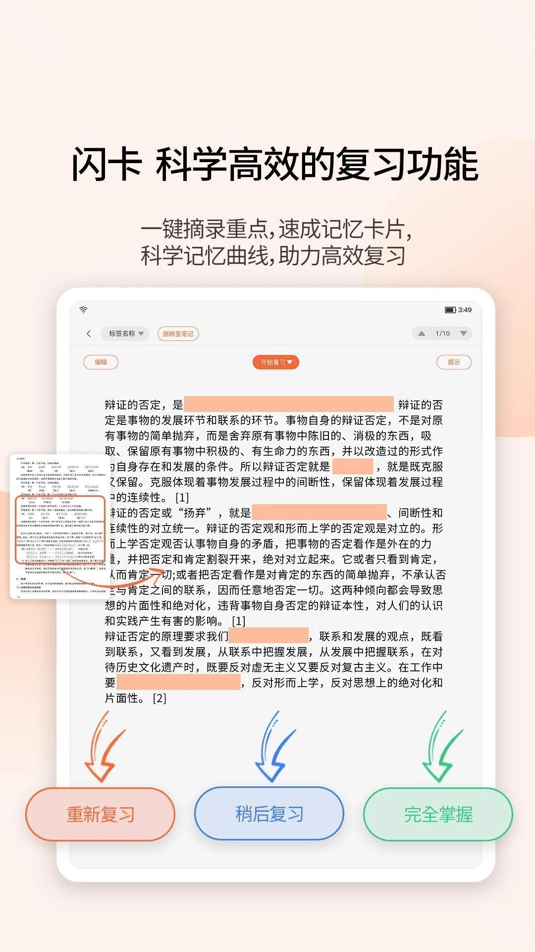 高效应对学业任务:提供多种笔记模板,助你快速记录课堂要点或规划备考方案;通过清晰的拍照、扫描功能留存课堂板书,集中收纳PDF、Office课件等资料,还能灵活摘录文档内容或制作复习闪卡;支持在PDF文档中添加标注,随时记录你的思考与见解。