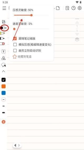 5、点击左侧提供的笔,点击可调整灵敏度等