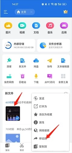 1.文件管理功能中,滑动、长按、摇一摇等手势操作与软件实现了深度融合