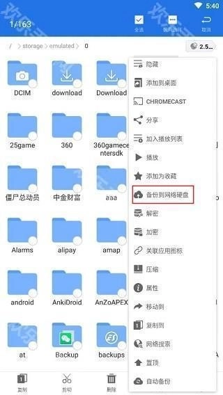 当您需要将文件备份到网络硬盘时,无需反复切换窗口进行复制粘贴操作,只需长按文件,依次点击“更多”选项,选择“备份到网络硬盘”即可完成操作。备份目录默认会在网络硬盘中创建一个名为“XX的ES备份”的文件夹,您可以根据需求修改该名称,也能选择是否将其设为默认备份目录。