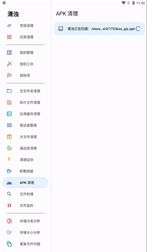 除了常规缓存清理外,还可对QQ/微信残留数据、WPS废弃文件、空文件夹以及冗余APK进行清理,最大程度释放设备存储空间。