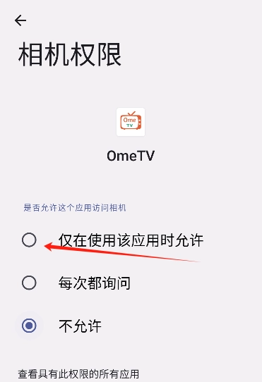 3、在弹出的窗口中选择“仅在使用该应用时允许”,即可摄像头。