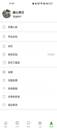 4、工作完成后,在平台来到我的页面,点击支付工程款即可完成结工资操作。