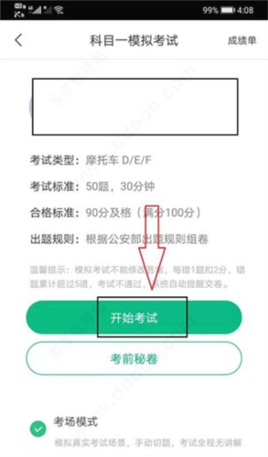 5、点击“开始考试”