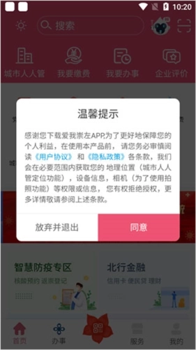 1、打开【爱我崇左】后,点击【同意】;
