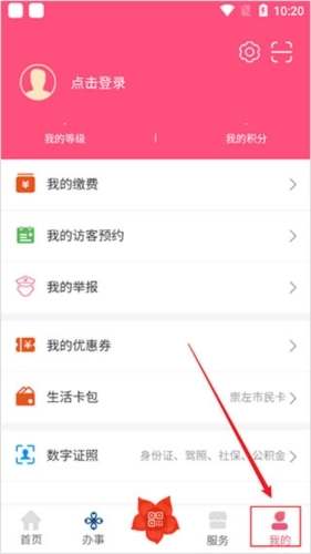 2、再点击右下方的【我的】进行登录;
