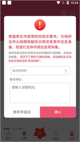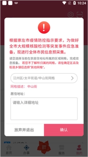 4、成功登录后完成网格登记操作,依据自身的常住地址选择对应的网格;