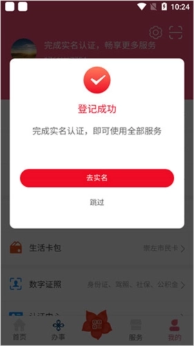 8、出现注册成功的温馨提示界面即完成认证。