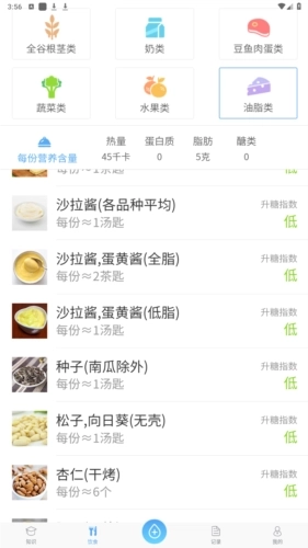 3、【饮食记录】软件能够记录每日的饮食情况,饮食中的各类成分都会被逐一记录下来,便于自己对饮食进行监控。