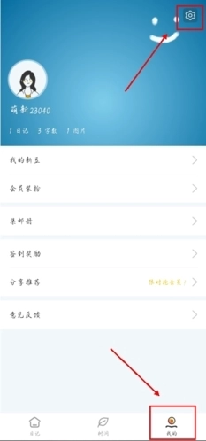1、第一步就是找到右下角【我的】界面进入,然后选择右上角的【设置】标志,点击它进入;