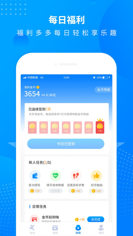 3.记录走路数据,每天都可以将步数转换为金币兑换收益,立即提现,极速提现,分秒到账,童叟无欺
