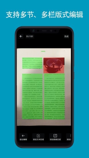 1、扫描各种办公文档及图片等文件的OCR图文识别软件,支持全能扫描拍照识别技术;