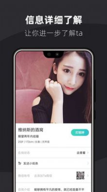 3.随时都能查看他们的实时距离和最新登录时间,相册,视频证明和联系信息都可以设置对方所见。