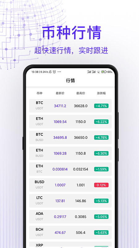 2、币种行情,超快速行情,实时跟进;