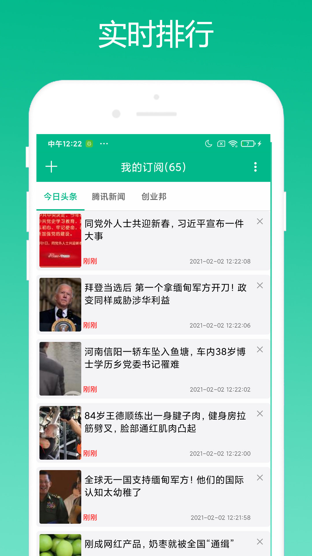 2、一款可以自由订阅和显示个平台今日Top排行资讯的APP,里面所有内容均来源于主流平台;