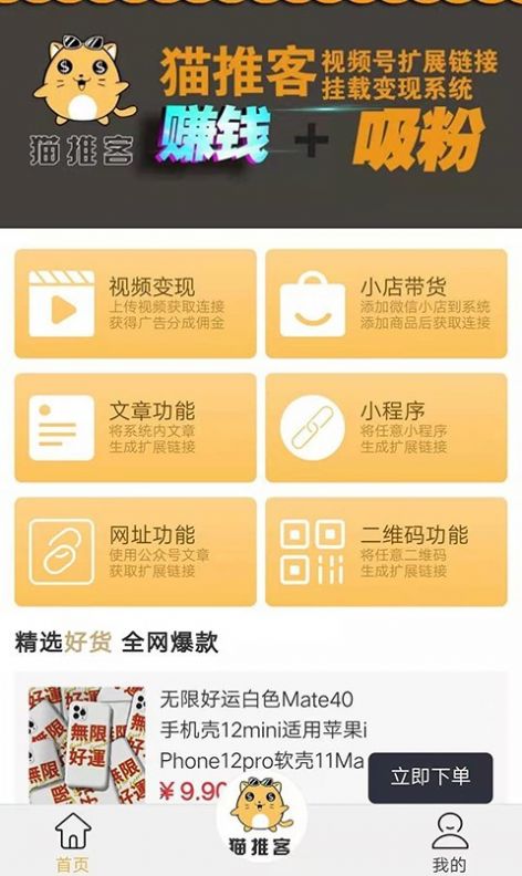 猫推客app是一款非常好用的短视频赚钱软件,软件中功能非常强大好用,支持视频变现、小店带货、文章生成等功能,能够轻松帮助用户进行视频推广赚钱,多种的变现形式,系统操作简单便捷,可以在玩短视频的同时进行赚钱,深受大家喜欢,快来体验一下吧!