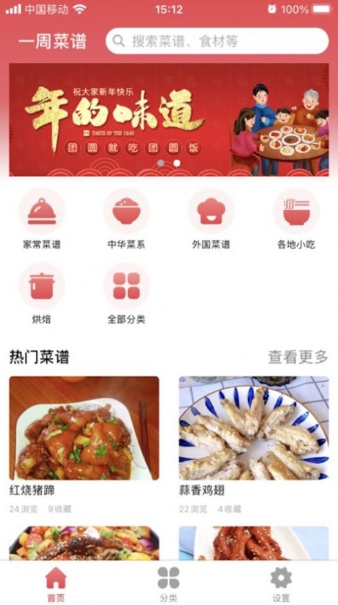 1.热门菜谱、分类菜谱、节日菜谱,多种菜谱模块不断更新推荐;