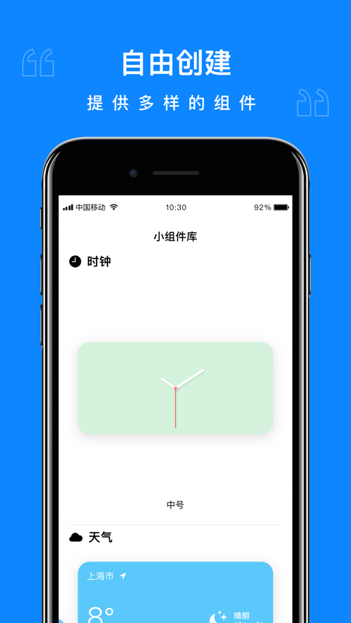 1、这款软件为用户追求创意个性化的桌面,打造了创意小组件app;