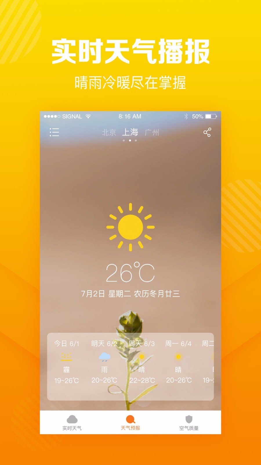 1、实时天气播报,晴雨冷暖尽在掌握