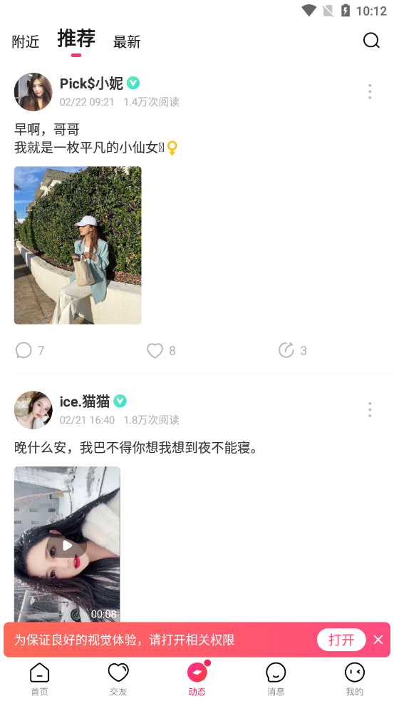 2、一对一视频聊天,邂逅美好,还有主播动态推送,帮助聊天解锁更多话题。
