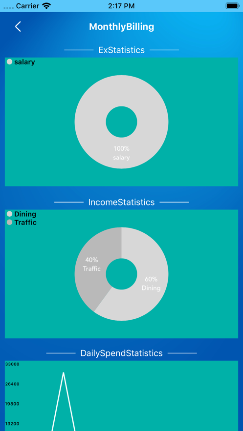 2、图表统计:一目了然的图表,帮你快速分析消费情况;