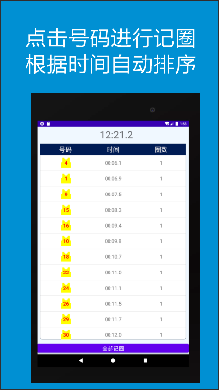 可以实现自动记录参加测试人员每一圈的成绩