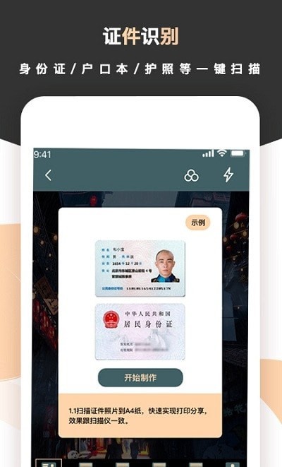 2,证件扫描-支持身份证、户口本、营业执照、银行卡、驾驶证等多种证件扫描,高精度自动抓取文字信息,免除手动录入的烦恼。