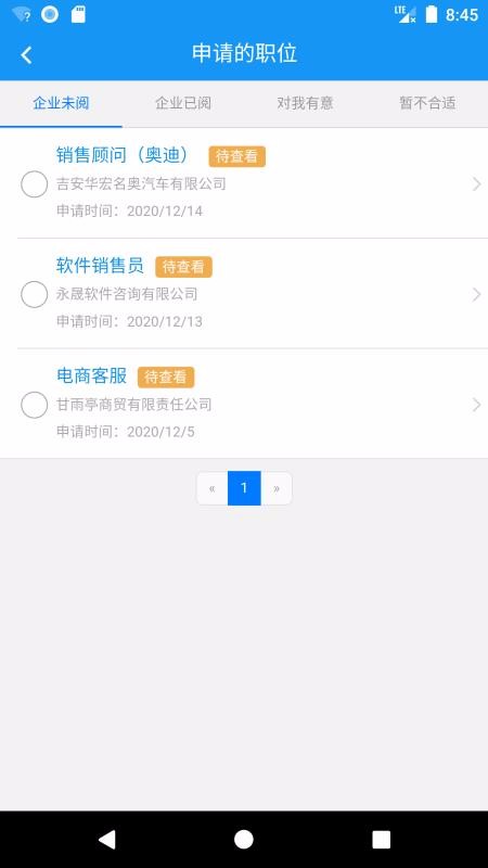 选择合适的职位,则可以发送简历申请,自动保存申请记录并根据申请进度显示;