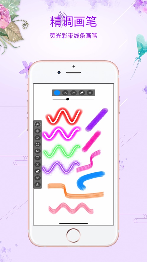 3、四种精美荧光笔,支持组合,让你的画大放异彩,高清画布,独家缩放大小,不让照片失真。