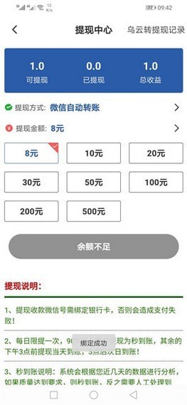 乌云赚app是一款内存占用很少的手机在线兼职赚钱软件,新手注册账号就送红包见面礼,还能接取平台上发布的各种赚钱任务,每个任务都会有详细的操作教程介绍,用户可以很轻易的完成并拿到佣金报酬,收益是很可观的,随时都能提现,一键提现24小时内就能到账。