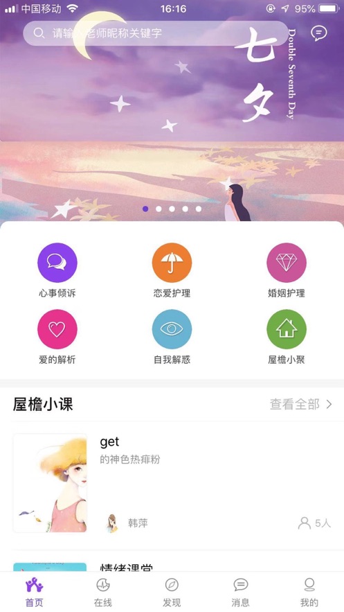 屋檐心事app是一款心理咨询服务平台,用户在这里可以倾诉自己的真实情感,并推出展示丰富的情感杂志资源,释放您的压力,还提供情感咨询和在线连麦倾诉等情感服务;在情感学堂里可以看到爱情经营方法,这里的老师或许可以帮助您解决您的压力和情感问题,以测试自己的真实性格。