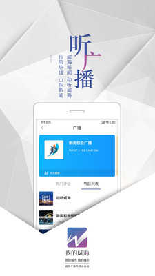 “我的威海”客户端不仅拥有本地更及时、更准确、更权威的新闻信息,而且也汇集了国外热点资讯内容,同时有效实现了电视大屏与手机小屏的互联互通,集电视直播、视频点播、电台直播、电台点播、便民服务、手机直播、精彩活动等为一体;拓展新闻+政务+服务新领域,整合广电媒体资源、政务资讯、便民信息,是一个集视听新闻发布、重大活动直播、行风政风互动、智慧便民服务等功能于一体的新闻客户端;通过整合优质内容资源,服务城市多样化,打造便民综合服务云平台,构建全媒体融合生态圈,开创精致城市宣传舆论工作新局面,为宣传威海、服务威海、推介威海发挥积极的作用。
