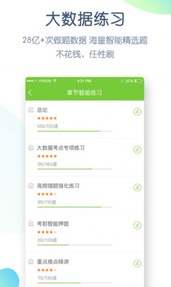 你一生用到的考试逆天相聚。全面锻造全面人才,金融类:基金从业、证券从业、银行从业、期货从业;财会类:会计从业、会计职称、注册会计师、经济师、税务师;工程类:一建、二建、造价、安全工程师、电气工程师、招标师、消防工程师;医学类:执业药师、执业医师、执业护士、卫生资格;资格类:职称英语、教师资格;大学类:英语四六级、考研、公务员、司法这些全都能自学!下载“万题库”,成就你的“麒麟之才”!