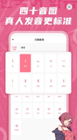 2、用户可以通过本软件快速入门掌握更多韩语元音辅音,跟随发声练习。