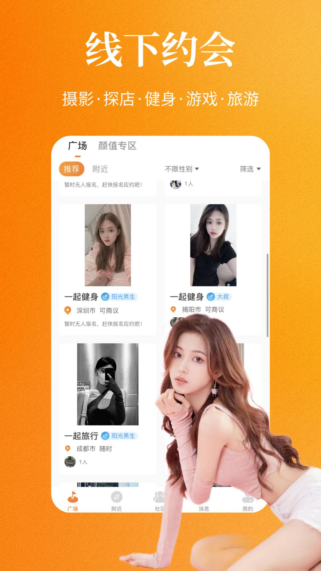 3、真人线上约聊,探探更多真实靠谱有趣的同城陌生人铂金交友圈聊天。