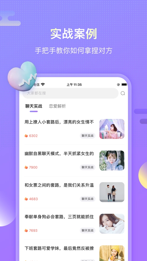4、超实用的恋爱实战案例帮助您解决恋爱困扰。