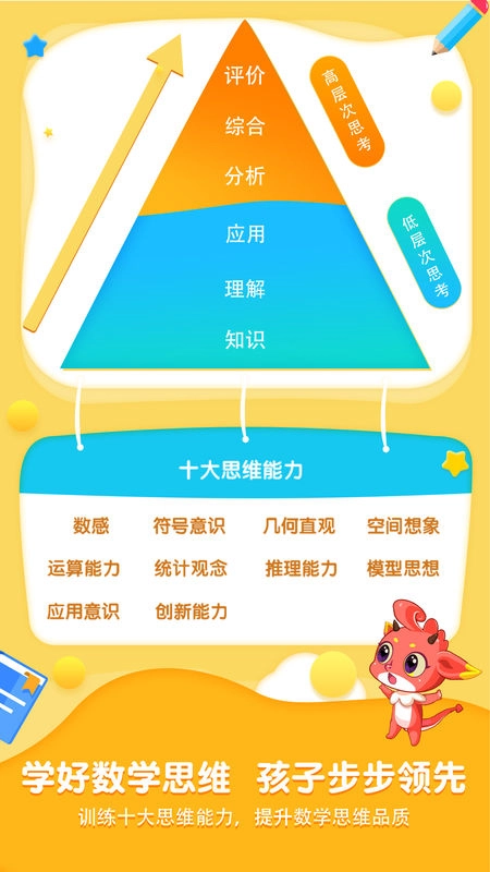 1、培养思维能力:培养宝宝学习数感,符号意识,几何直观,空间想象,运算能力,统计观念,推理能力,模型思想,应用意识,创新能力的超级课堂。