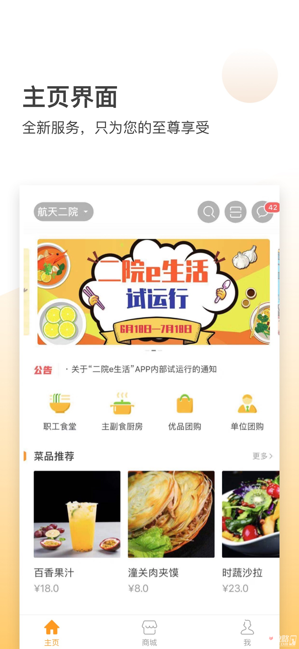 2、二院e生活2023版,航天二院社区生活服务平台,全面覆盖职工食堂、主副食厨房、活动资讯、社区团购这四大方面内容,提供便捷、优质的生活服务,享受美好社区生活