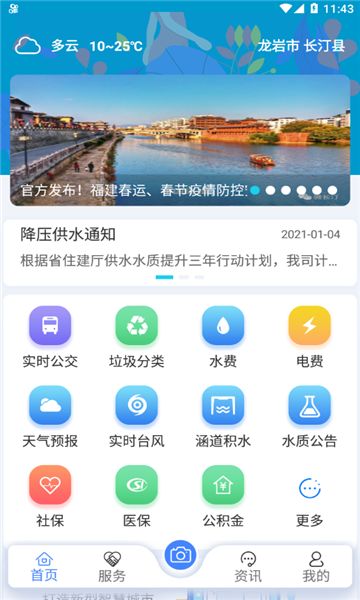 3、通过便民服务、新闻资讯、随手拍、智慧专题、个人信息等专业功能及应用汇集政务服务、公共服务、社会服务资源;